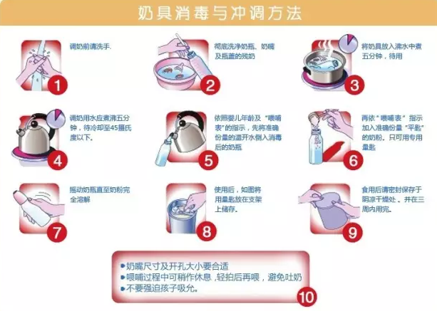 12、冲配方奶粉的温度为45℃~50℃,奶具煮沸消毒时间为10~15分钟。