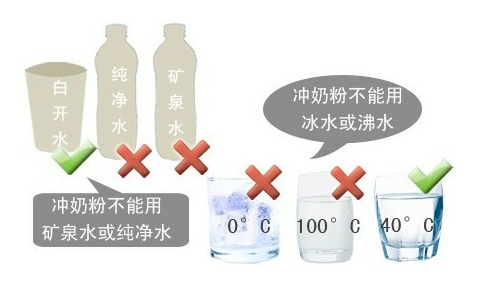 危害:婴幼儿奶粉中有不少热稳定性较差的营养成分,如果使用较高温度的开水冲调奶粉,容易流失营养;冷水冲调奶粉能充分溶解,宝宝肠道很受伤。纠正:市面上的主流奶粉产品都是经过相关质检部门的检验,不含致病菌,所以为了保证营养,大多数奶粉所建议的冲调温度多数都在70℃以下。具体不同牌子的奶粉,建议的水温不一样,所以新购买一种奶粉饮用时,最好看看说明。