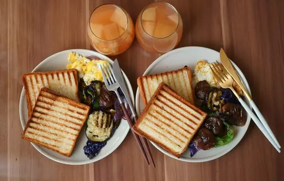 |煎吐司+煎蛋+煎蔬菜|