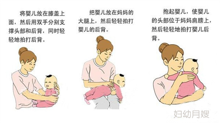 2. 喂奶后,竖着抱宝宝,轻轻给宝宝拍背直到打嗝,再缓缓放下。