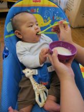 先喂辅食后喂奶,一次吃饱:每次辅食添加的时间应该安排在两次母乳或配方粉之前,先吃辅食,紧接着喂奶,让孩子一次吃饱。之所以要先吃辅食,是因为要持续保持孩子“饥”和“饱”的感觉。