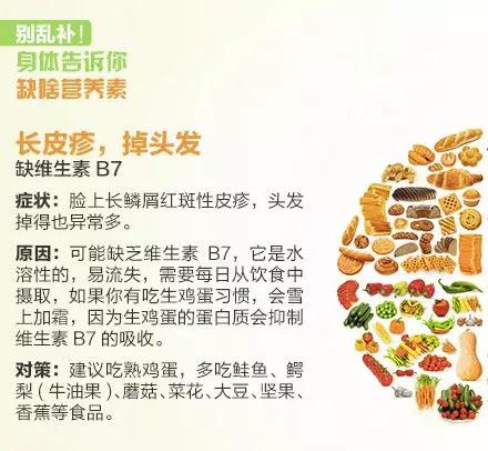 长皮疹、掉头发:缺维生素B7