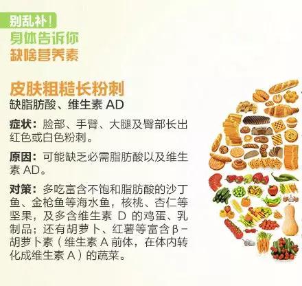 皮肤粗糙:缺脂肪酸、维生素AD