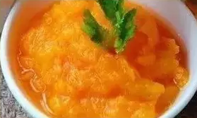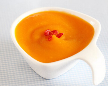 做法:南瓜去皮,切成小丁蒸熟,然后将蒸熟的南瓜用勺压烂成泥。在南瓜泥中加适量开水稀释调匀后,放在干净的细漏勺上过滤一下取汁食用。南瓜一定要蒸烂。也可加入米粉中喂宝宝。
