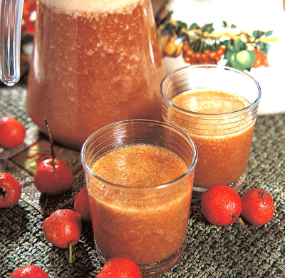胡萝卜山楂汁 原料:新鲜山楂1~2颗,胡萝卜半根