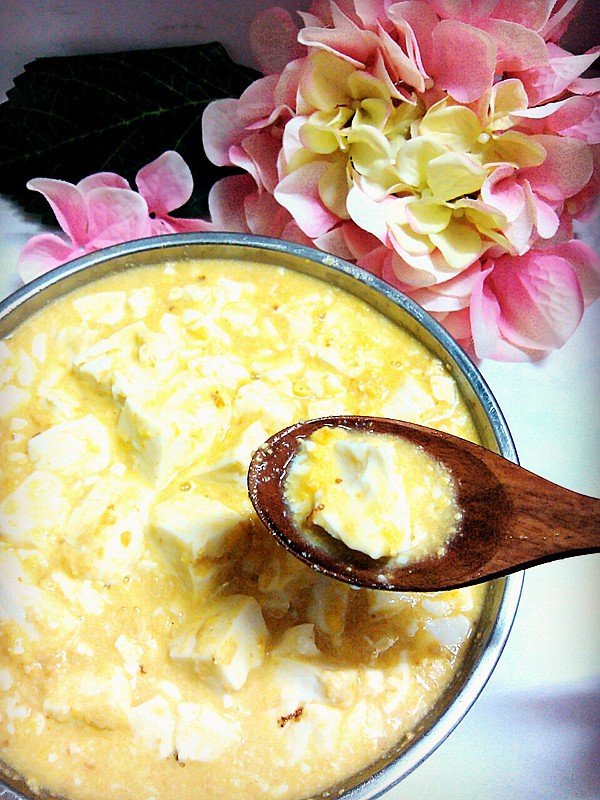 双蛋黄豆腐 原料:鸡蛋、熟咸鸭蛋、内酯豆腐